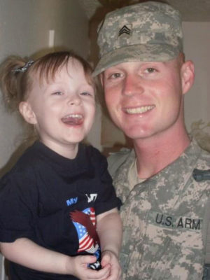“Josh joined the Army as a kid and came out a hero. He is my ex-husband but we still remain close to co-parent our two amazing children. While Josh was serving in his first and longest deployment in Iraq our first daughter was born. I will never forget the satellite call where he first heard our daughter crying, he dropped the phone and started screaming, “I’m a dad! My baby girl is here! She’s here!”. His deployment was extended at the time so when he arrived back in Orlando, Florida our daughter was already three months old. Later we found out our sweet girl has Autism and is non-verbal; that never weakened his love for her and he was determined to connect with her no matter what. Josh has always been a strong leader in the Army, his co-workers have become his family. While he is no longer in the Army, him and his tank gunner have started a non-profit for veterans to enjoy recreational hunting and fishing trips at no cost to them. He will always be our hero.”