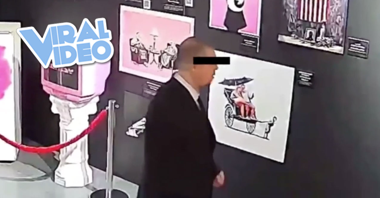 Footage of a security guard at a museum in Russia is going viral . . . after he tried to eat part of an art exhibit.