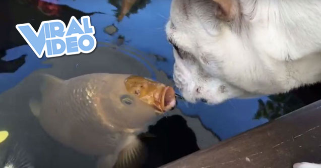 Youtuber Carrie Bredy has recorded footage of the adorable and unlikely love affair between French Bulldog (Daisy) and Koi fish (Frank).