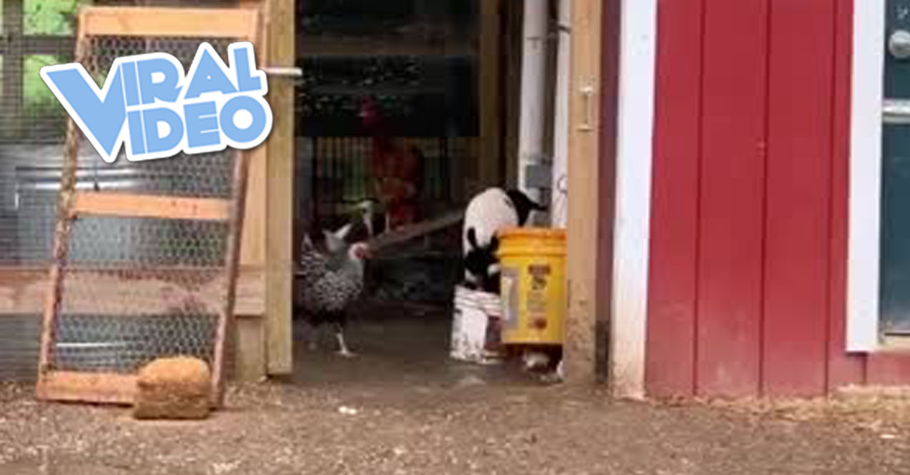 This baby goats chooses the chicken coop over the goat barn to hang out in… Adorably confused!