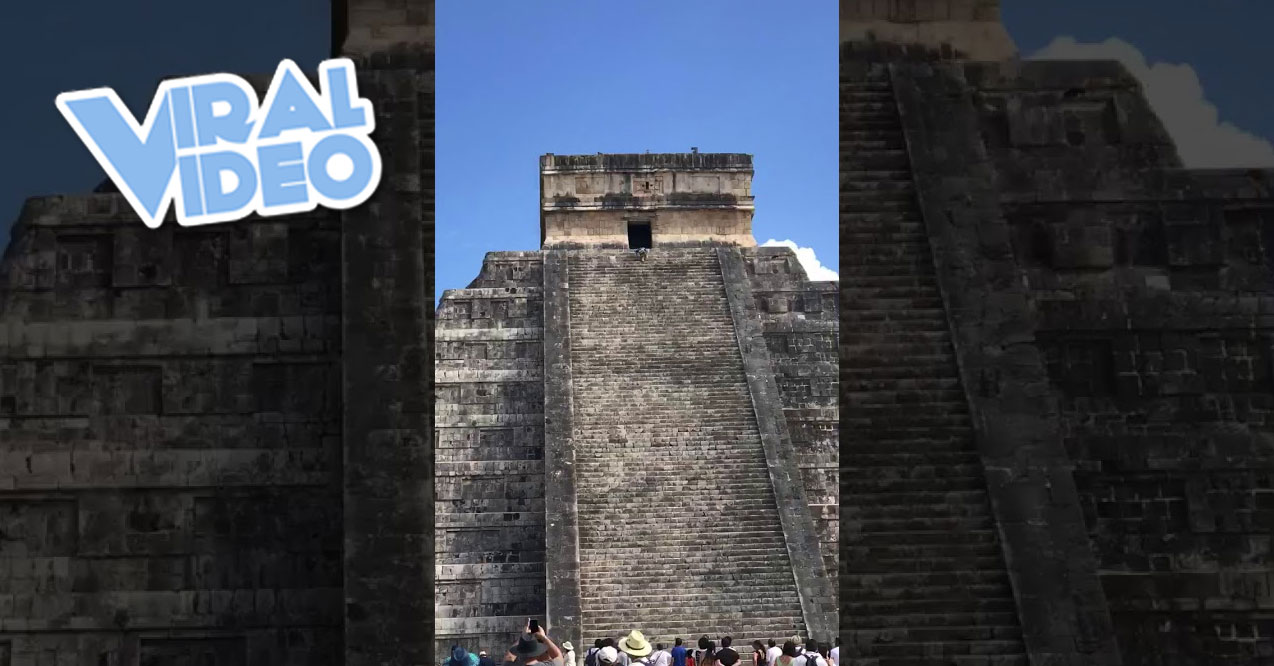 “Visiting Chichen Itza in Mexico when a woman took off up the stairs to climb the pyramid to the top on her knees which is forbidden but did it anyway.”